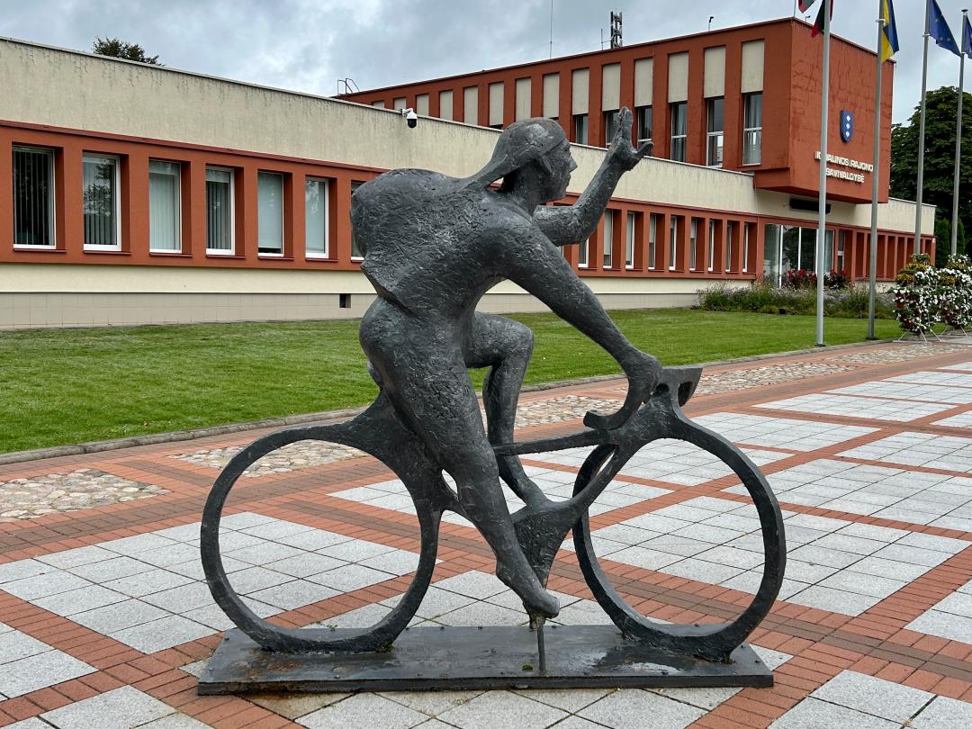 Picture this: you step into the heart of Ignalina, a small Lithuanian town surrounded by glittering lakes and endless pine forests. In the middle of Liberty Square, gleaming in bronze, a cheerful cyclist greets you with an open wave—mid-ride, as if about to roll straight into the crowd.